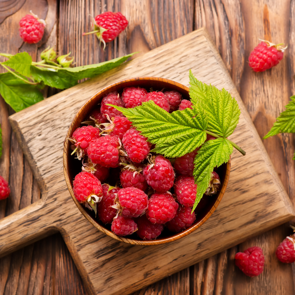 Delicious raspberries bursting with vitamins, antioxidants and fibre.