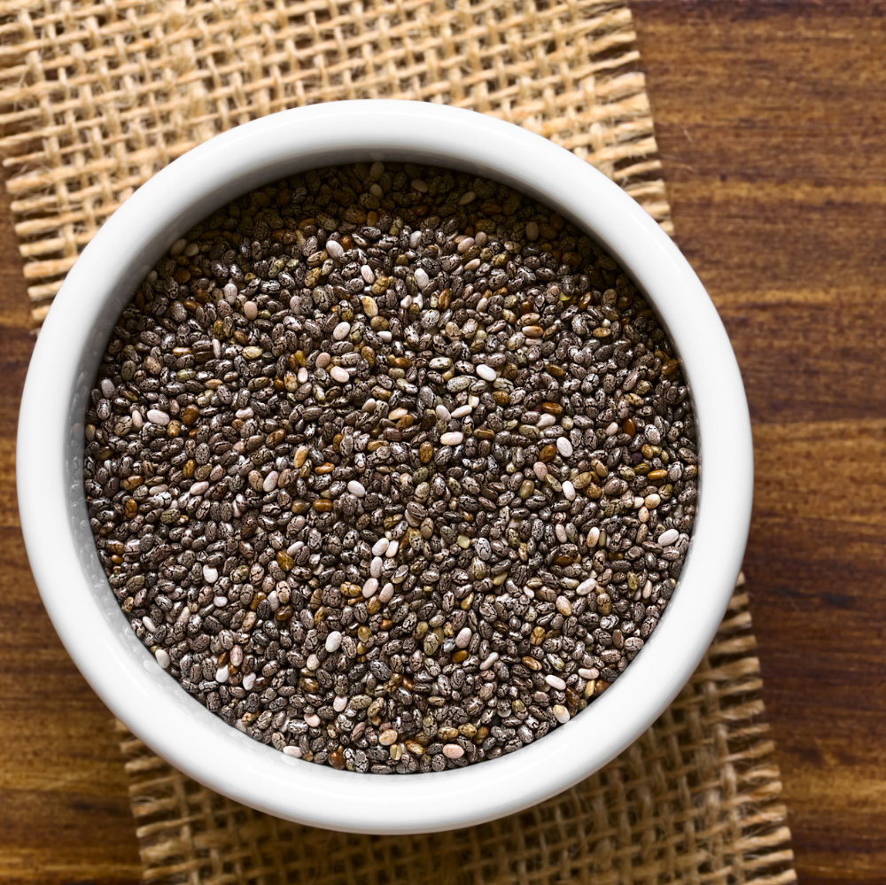 Chia seeds are tiny black seeds from the salvia hispanica plant. They’re an excellent source of omega-3 fatty acids, fibre, iron, and calcium. Head to our Seed Story page for more info.