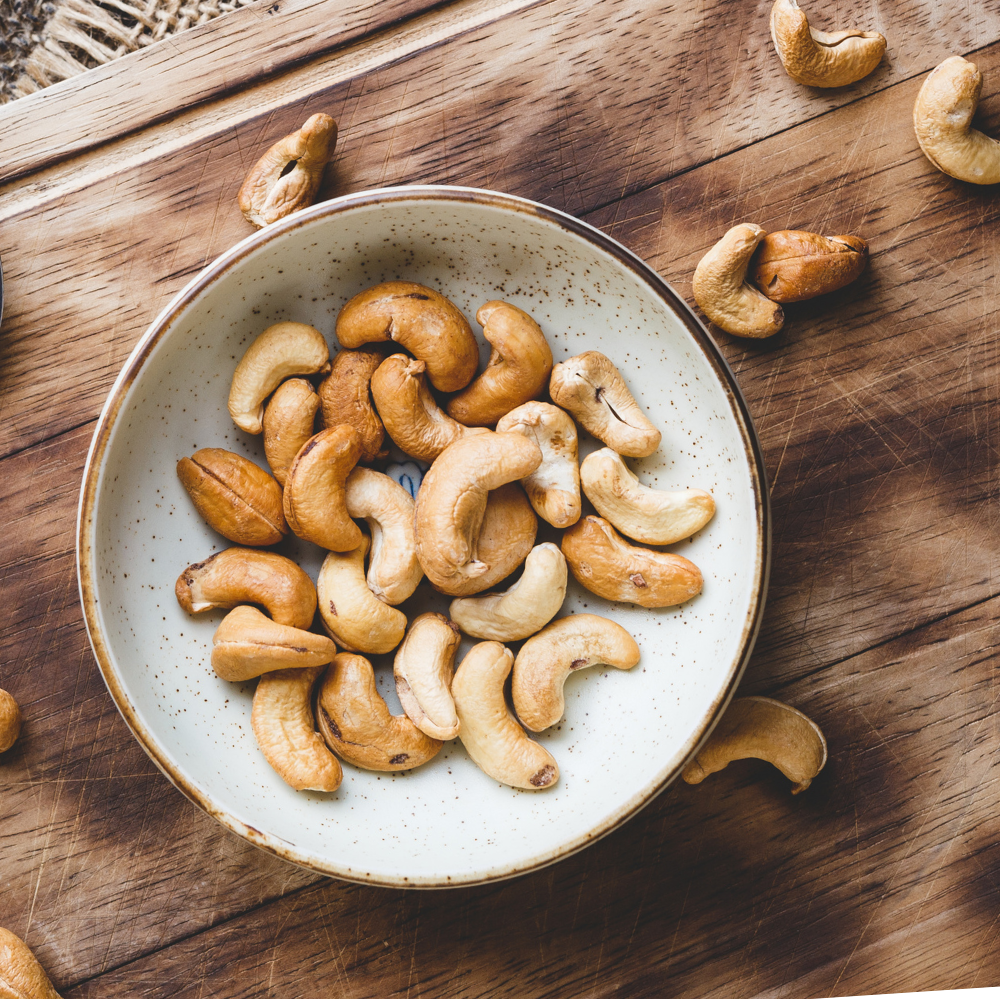 Cashews are low in sugar and rich in fibre, heart-healthy fats and plant protein. They’re also a good source of copper, magnesium, and manganese; nutrients important for energy production, brain health& immunity.